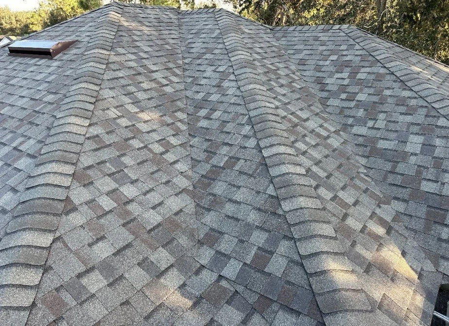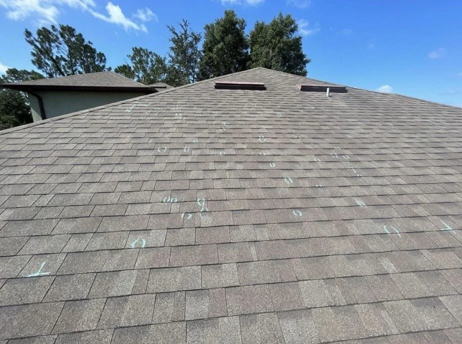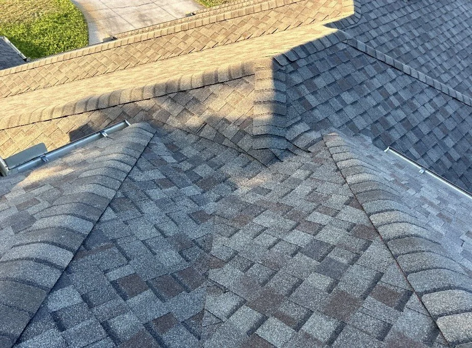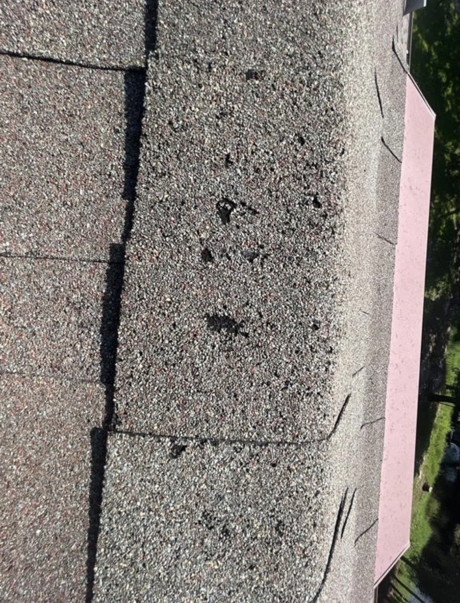 Before and after Weathered Wood (Hail Damaged roof)