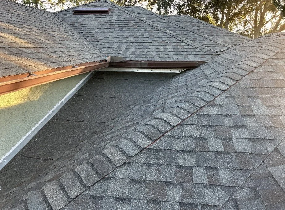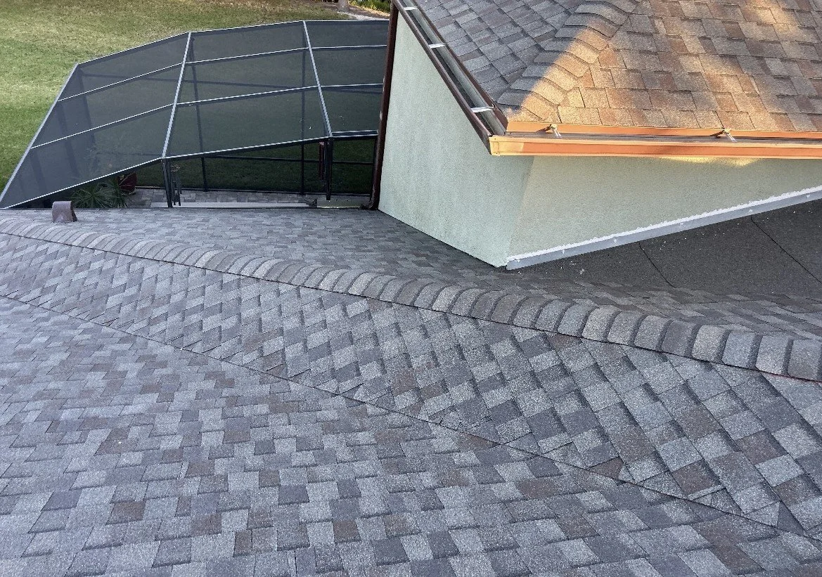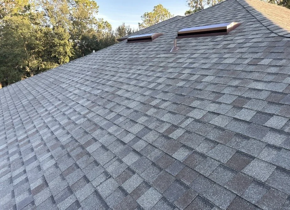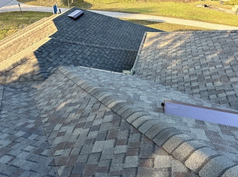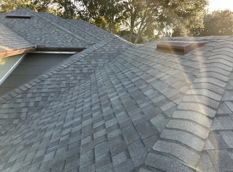 Before and after Weathered Wood (Hail Damaged roof)