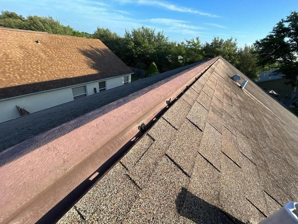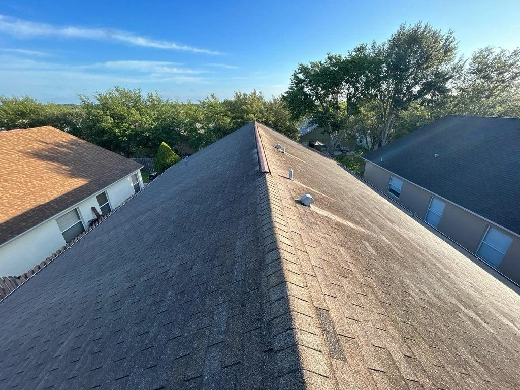 Before and after on a 20 year 3-tab roof. Final product is Certainteed landmark in Burnt Sienna